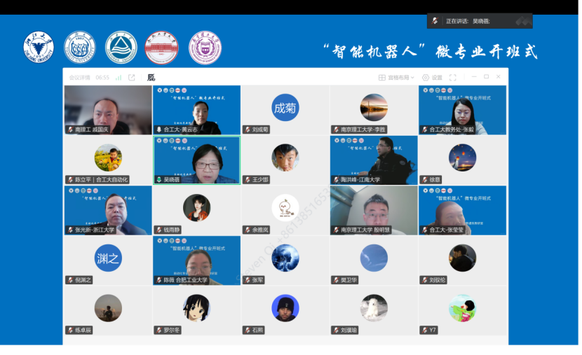 在早前举行的五校线上开班式上,虚拟教研室主任、南京理工大学吴晓蓓教授在致辞中强调,设立该微专业是教研室响应国家新工科建设号召,推动教学资源共建共享,打破校际与校企壁垒,协同培育适应未来产业需求人才的重要举措。虚拟教研室副主任、同济大学陈启军教授系统介绍了微专业的建设特色、培养目标、课程体系与教学安排。虚拟教研室副主任、江南大学陶洪峰教授对入选学生提出寄语,勉励大家把握学习机遇,夯实基础、积极实践,在智能机器人领域不断探索。虚拟教研室副主任、浙江大学张光新教授为各校班导师及本学期任课教师颁发聘书。开班式由合肥工业大学黄云志教授主持,各共建高校、合作企业(深圳市越疆科技有限公司、南京墨问科技有限公司)代表及全体入选学生共同参与。